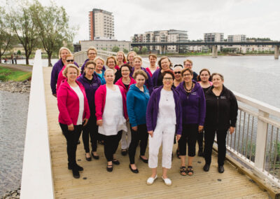 Kuorossamme laulaa lähes 50 eri-ikäistä naista, joilla kaikilla on erilainen ja omanlainen musiikkitaustansa. Toiset laulavat monissa muissa projekteissa tämän kuoron lisäksi, toiset omistautuvat vain naiskuorolle, joillakin on pitkä yksinlaulu-ura taustalla ja joku on tullut mukaan vasta-alkajana sekä jäänyt koukkuun naiskuoroon ja naiskuorotoimintaan ja soundiin.